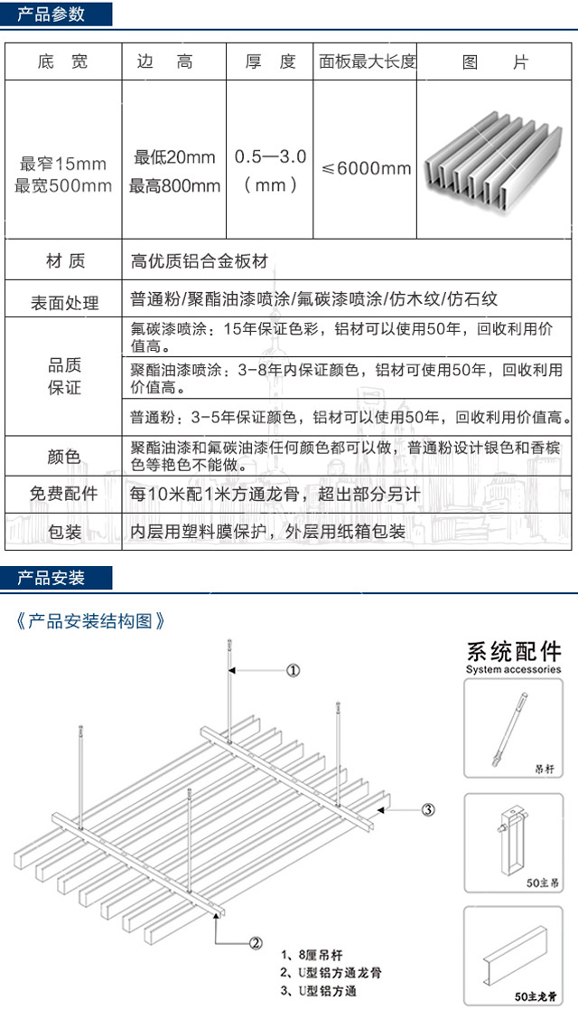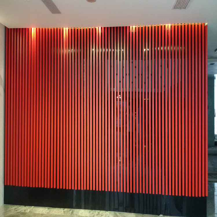 外墻鋁型材方管是一種鋁材通風擠壓成型,產品硬度,直線度遠遠超過其它產品,整體效果比板材鋁方通要好,多數型號需要定做磨具再生產,搭配各種不同顏色,懸掛不等高度,引入不同燈光效果,相益輝映,展現明快、飄逸時尚,諧美的裝飾風格。加以防風碼安裝結構,應用于室外裝飾能有效防風,效果更鮮明。通透的安裝方法,裝拆簡易快捷。