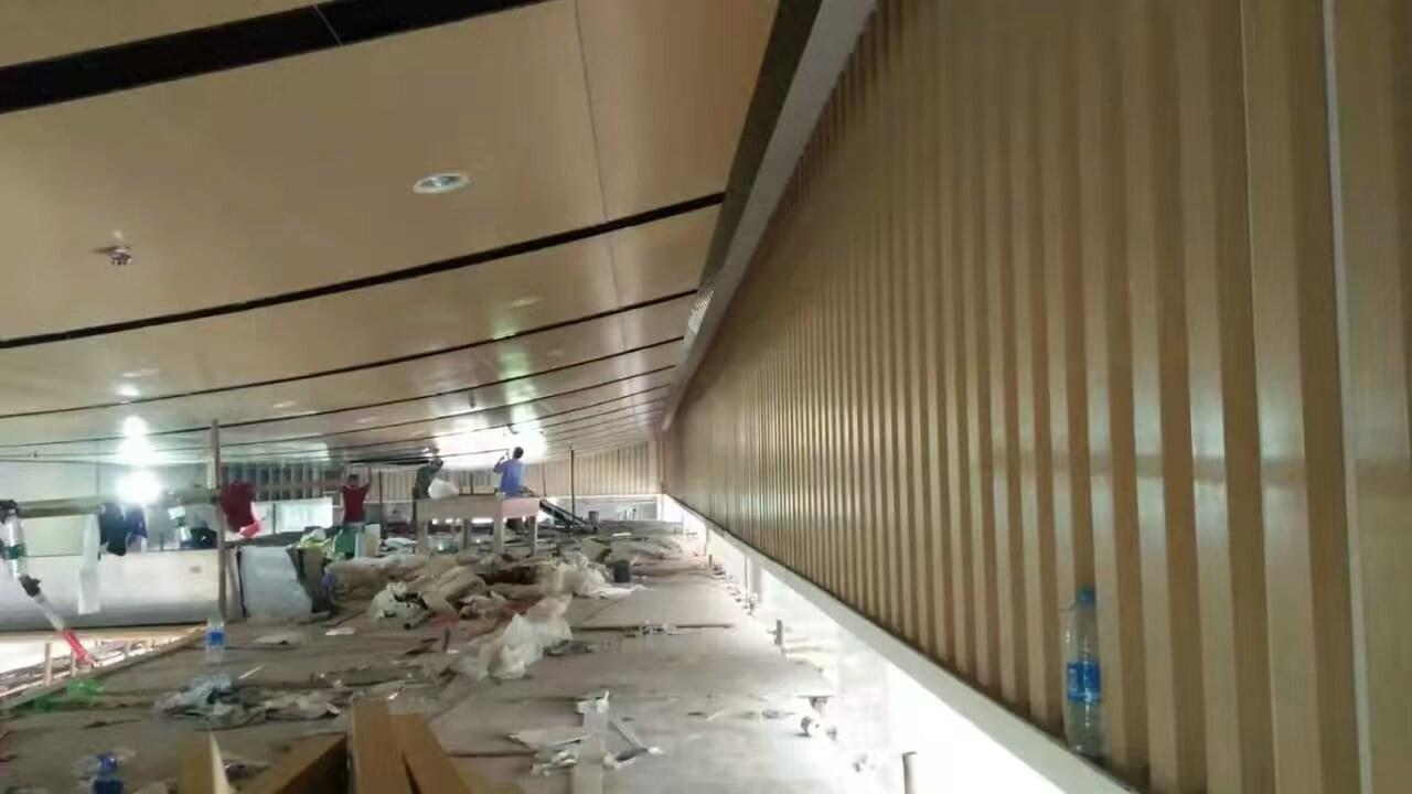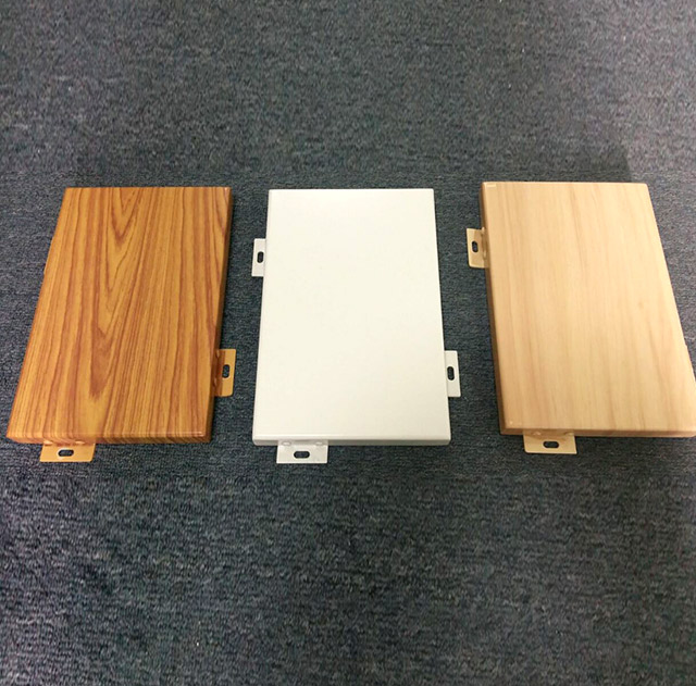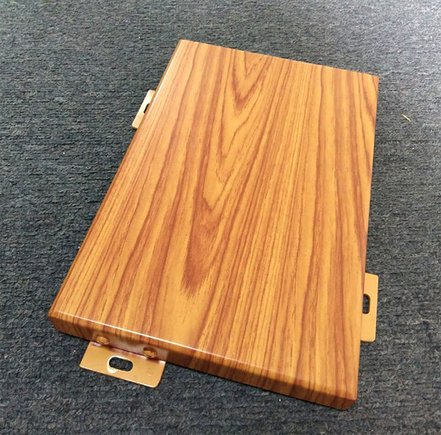 木紋鋁單板是以高等級鋁合金為主要材料,按工程現場設計的尺寸、形狀和構造形式經過數控折彎等技術成型,并在其表面氟碳噴涂的基礎上采用意大利木紋膜,經抽真空處理,將木紋膜移印到鋁單板的氟碳涂層上的一種高檔金屬裝飾材料。